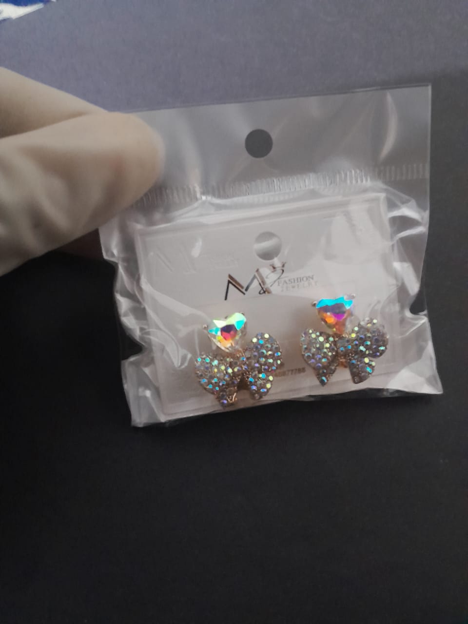 Bright and colorful artificial earrings with glittery shine, perfect for adding a playful sparkle to any outfit.